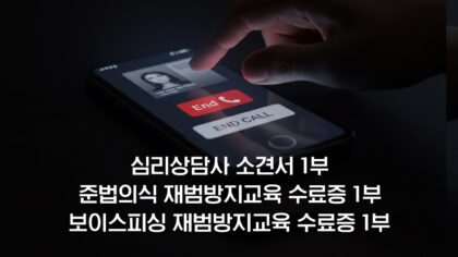 수강생 이○○님은 “보이스피싱의 심리와 재범 방지 전략이 명확해 재판 준비에 큰 도움이 됐고, 수료증·소견서 발급도 빨랐습니다.”